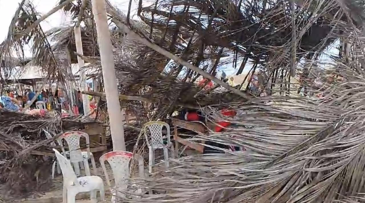 Parte da Barraca do Chico do Caranguejo, localizada na Praia de Atalaia, em Luís Correia, no Norte do Piauí, desabou neste domingo (7). Segundo informações preliminares, o incidente ocorreu após um turista armr uma rede para se balançar no local.