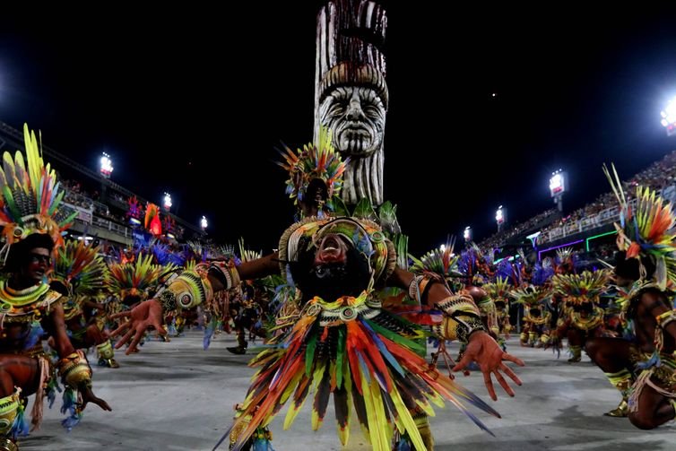 A cultura indígena também foi tema do desfile da Grande Rio, a quarta a pisar na avenida do samba. O enredo Nosso Destino É Ser Onça abordou a mitologia tupinambá.