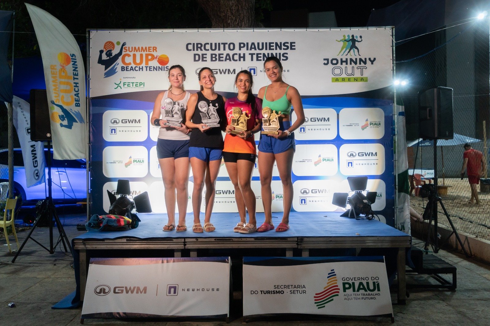 Após quatro dias de competição, os organizadores do circuito Summer Cup de Beach Tennis encerraram neste domingo (24) a primeira fase da 7ª etapa do Circuito Piauiense de Beach Tennis, que é evento supervisionado pela Federação de Tênis do Piauí – FETEPI. O evento, que aconteceu de quinta a domingo na Arena Jhonny Out, reuniu 300 competidores em duplas. A premiação começou no final da tarde com troféus para os campeões.