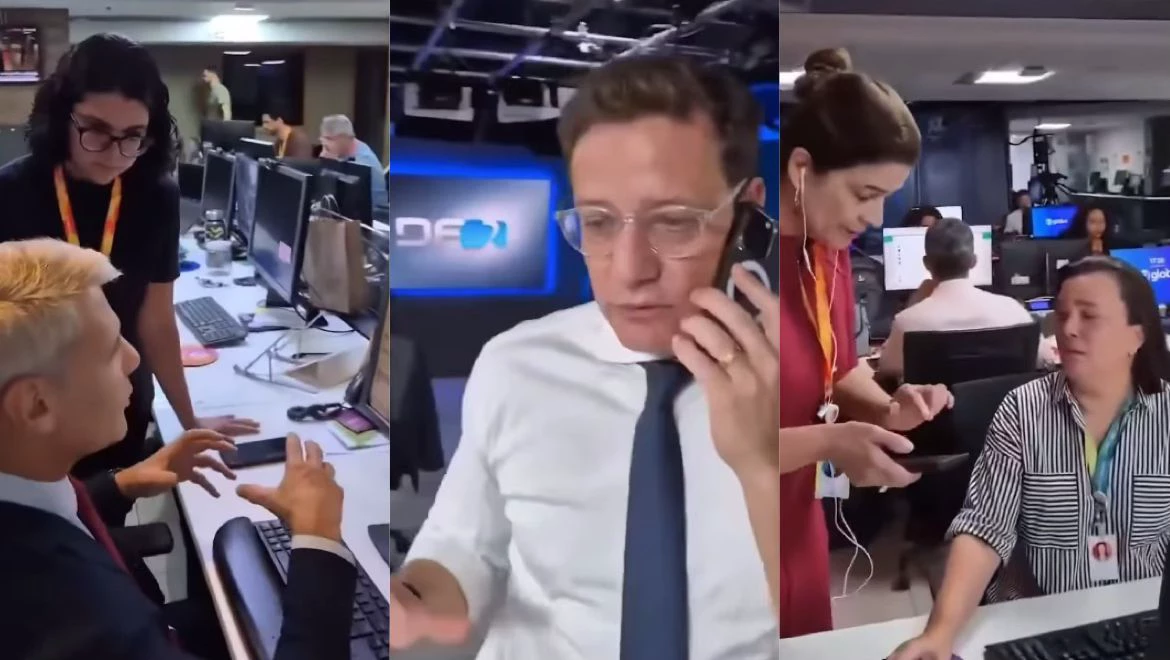 Jornalistas da Globo do Distrito Federal aparecem em um vídeo que mostra os bastidores da…